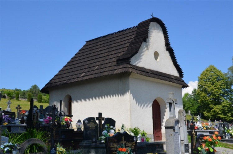 Jest to obiekt wzniesiony na planie prostokąta z zamkniętą półokrągło absydą, jest murowana, tynkowana i nakryta dwuspadowym dachem krytym gontem. Dach ukryty za neobarokowym szczytem z okulusem w środku i zwieńczonym krzyżem. W ścianie południowej wykonane jest małe prostokątne okienko, a w zachodniej drewniane drzwi zakończone łagodnym łukiem. Nad drzwiami gontowy okap.