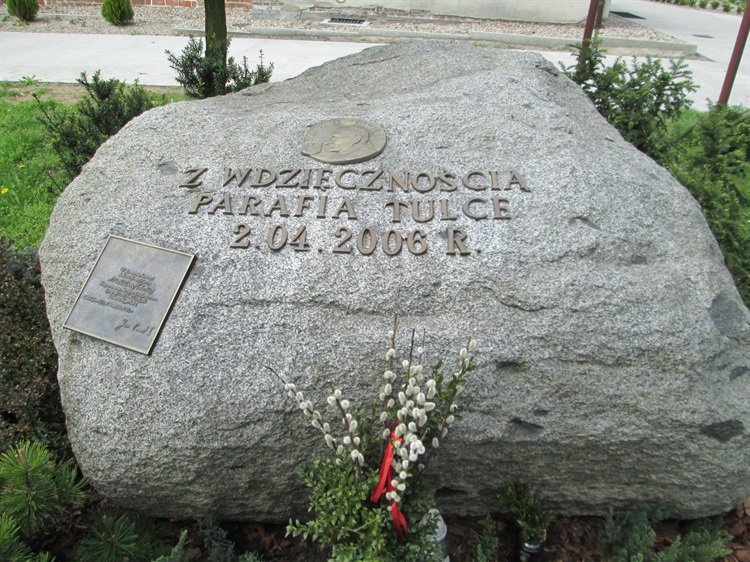 Na terenie sanktuarium, przy kościele p.w. Narodzenia NMP, znajduje się Głaz Wdzięczności ufundowany przez parafię dnia 2 kwietnia 2006 roku. Dostrzec na nim możemy medalion z wizerunkiem papieża, Świętego Jana Pawła II, oraz tabliczkę z życzeniami przesłanymi przez papieża z Castel Gandolfo w dniu 2 września 2004 roku: „W 25. rocznicę Koronacji łaskami słynącej figury Matki Bożej Tuleckiej duszpasterzom, wiernym i pielgrzymom życzę obfitości łask Bożych i z serca błogosławię”.