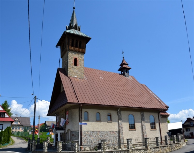 Jest to obiekt wzniesiony na planie prostokąta z węższym prezbiterium, murowany z kamienia,częściowo tynkowany i nakryty dwuspadowym dachem. Nad dachem wznosi się dzwonnica z izbicą oraz sygnaturka. Wyposażenie kościoła to: duży krzyż z figurą ukrzyżowanego Chrystusa w ołtarzu głównym oraz drewniane figury Matki Bożej i św. Jana Chrzciciela- patrona świątyni w ołtarzach bocznych. Na uwagę zasługują również ładne witraże. Konsekracji nowego kościoła dokonał 24.06.1898 r. metropolita krakowski , ks. kard. Franciszek Macharski.