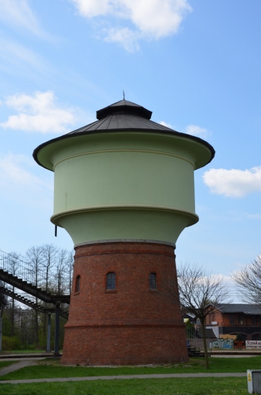 Wieża typu "Intze" wzniesiona w pierwszej dekadzie XX wieku stoi w pobliżu stacji w Namysłowie. Trzon wieży murowany jest z czerwonej cegły, głowica otynkowana i nakryta dachem z choragiewką wiatrową na szczycie, na której widnieje data ostatniego remontu wieży – 2009 rok. W głowicy zainstalowany jest najważniejszy jej element – zbiornik wodny, a na zewnątrz głowicy widoczna jest listwa wodna.