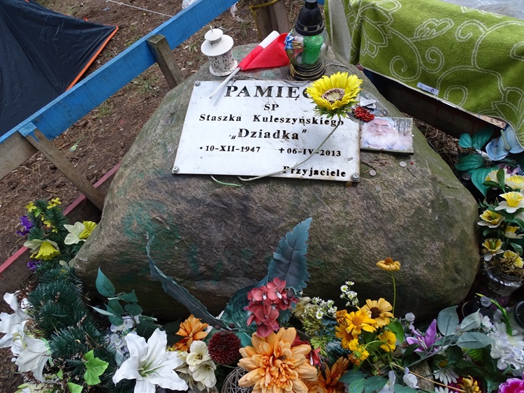 Kiedy w 2012 r. Staszek poważnie zachorował, woodstockowicze z każdego krańca Polski podtrzymywali go na duchu. Choroba pokonała go w kwietniu 2013 r., ale na festiwalowej łące, blisko miejsca, gdzie zawsze rozbijał swój namiot, już po trzech miesiącach, w lipcu tego roku, pojawiła się na sporym kamieniu tablica o treści: „Pamięci śp. Staszka Kuleszyńskiego „Dziadka”/ 10.XII.1947 4.06.2013/ Przyjaciele”. Zamontowała ją tutaj grupa przyjaciół Dziadka mieszkająca na kostrzyńskim osiedlu Leśnym. Woodstockowicze chętnie wokół niej ustawiają namioty a przy kamieniu palą znicze i kładą kwiaty. „Dziadek” nadal jest pośród nich, w opowieściach.