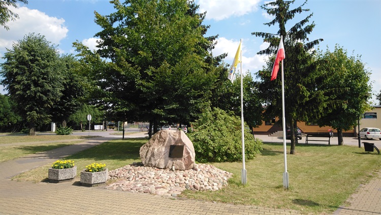 Pomnik Kamień Pamięci poświęcony Janowi Pawłowi II Honorowemu Obywatelowi gminy Garbatka ustawiony w 2014 r