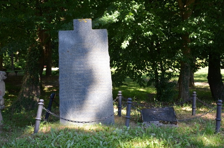 Jest to kamienna płyta ustawiona pionowo, na której wyryte są nazwiska, imiona, stopień wojskowy i data śmierci oraz inskrypcja w języku niemieckim o treści "Niemand hat grössere Liebe denn die, dass er sein Leben lässt für seine Freunde" ( Nikt nie ma większej miłości od tej, gdy ktoś życie swoje oddaje za przyjaciół swoich). Obok pomnika znajduje się płyta nagrobna Dubisława von Natzmera, właściciela wsi zmarłego w 1937 r.