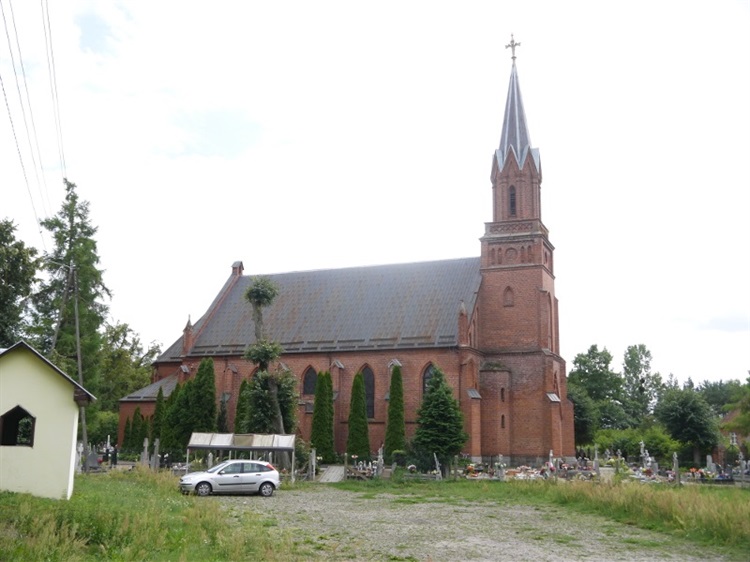 Obecny kościół powstał dla istniejącej formalnie od 1870 r. parafii katolickiej. Zbudowany został w latach 1881-1986, a konsekrowany w 1897. Orientowana budowla stoi na podmurówce z kamienia, mury są ceglane, kryte dwuspadowym dachem, fasadę zachodnią wieńczy wysoka wieża.