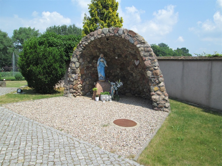 Przy kościele p.w. Wszystkich Świętych znajduje się murowana grota zbudowana z kamienia polnego, w której znajdują się dwie figury Matki Bożej. Są to figury Matki Bożej z Lourdes. Większa z nich umieszczona jest na kamieniu, natomiast mniejsza stoi przy kamieniu. Warto wspomnieć, że Matka Boża ukazywała 14-letniej wiejskiej dziewczynie Bernadettcie Soubirous 18 razy w okresie od 11 lutego do 16 lipca 1858.