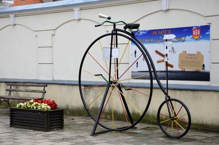 Na rynku w Borku Wielkopolskim, przy ścianie ratusza stoi metalowy bicykl – rodzaj roweru z wielkim kołem przednim z pedałami i małym tylnym. Ta osobliwość została wykonana przez uczniów Zespołu Szkół im. Powstańców Wielkopolskich w Borku. Praca ta powstała w ramach projektu „e-Szkoła Moja Wielkopolska”, realizowanego przez samorząd województwa i Uniwersytet im. Adama Mickiewicza w Poznaniu.