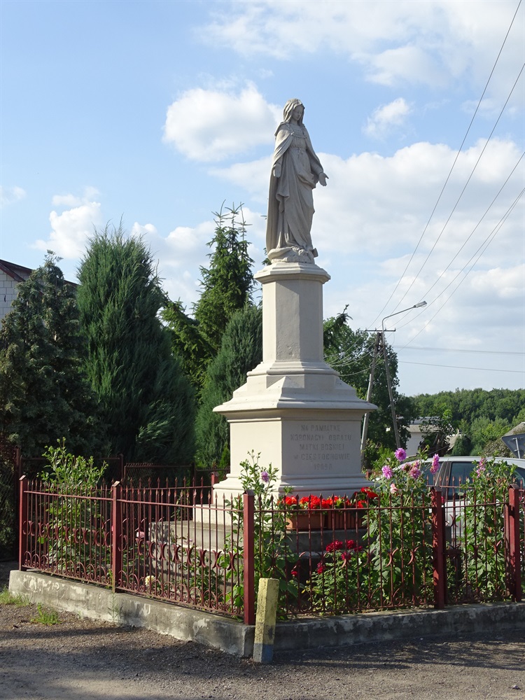 Figura Matki Boskiej znajduje się przy drodze w niedalekiej odległości od ogrodzenia kościoła św. Mikołaja i św. Małgorzaty. Murowana rzeźba Matki Boskiej została umieszczona na wielostopniowym postumencie. Została ustawiona w 1909 r. na pamiątkę koronacji obrazu Matki Boskiej w Częstochowie. Całość została ogrodzona metalowym ogrodzeniem.