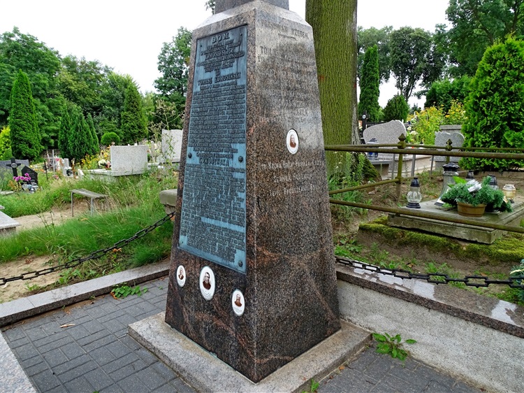 Ś.P. Franciszka z Malinowskich Komosińska urodzona w 1820 r. w m. Golubiu n/Drwęcą w zaborze pruskim. Córka burmistrza polskiego. Żona Tomasza. Po ciężkiej desperacji w czwartym miesiącu po śmierci męża, dn. 5 marca 1875 w Ciechocinku zasnęła na wieki, pozostawiwszy po sobie dwie córki, Klotyldę i Petronelę, oraz pięciu synów: Czesława, Pawła, Bolesława, Jana, którzy już zmarli. Pozostał przy życiu najmłodszy syn Ignacy, który pragnąc wypełnić życzenie nieboszczki matki i wyręczyć w ten sposób najstarszego brata Czesława, który nie wywiązał się należycie z powierzonego mu obowiązku. Ja najmłodszy syn Ignacy, stawiam na pamiątkę ten krzyż z figurą Matki Boskiej Skępskiej, która była najulubieńszą za życia mej matki. Dziś, gdy po latach niewoli, po krwi przelanej ojców naszych i braci, po łzach i głodzie, wojnie i niedostatku, Bóg miłosierny pozwolił mi jeszcze doczekać niepodległej Polski pragnę w ten sposób upamiętnić miejsce wiecznego spoczynku ś.p. prochów moich rodziców, którzy w duszę mą wszczepili miłość Boga i Ojczyzny. Pamiątkę tę ufundował roku pańskiego 1935 najmłodszy syn Ignacy Komosiński, emeryt.”