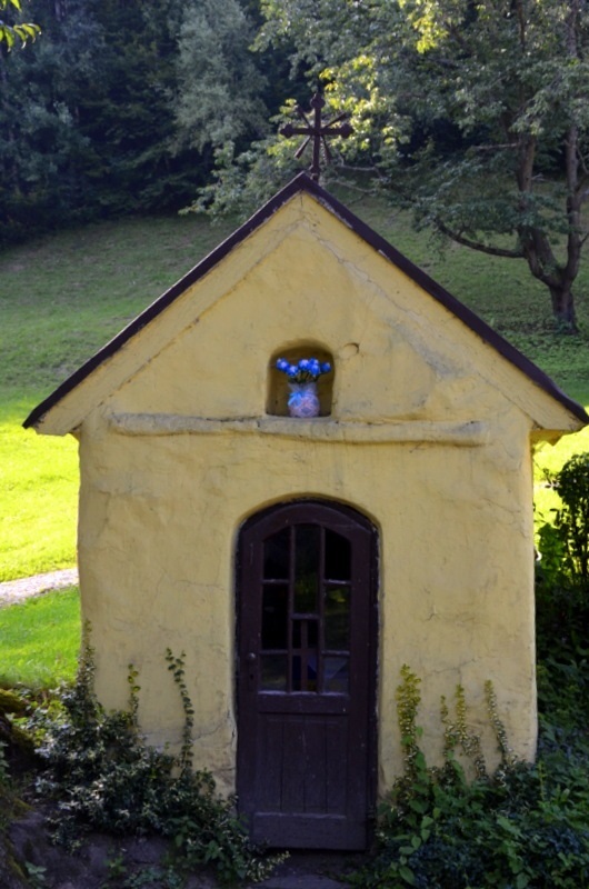 Wewnątrz na szczególną uwagę zasługuje zabytkowy drewniany ołtarzyk oraz zabytkowe drewniane figury stojące na ołtarzyku i półce ustawionej przy ścianie bocznej oraz drewniany krucyfiks z figurką ukrzyżowanego Chrystusa zawieszony na ścianie.
