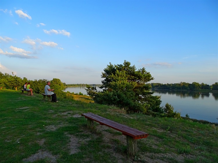 Na kolejnym kamieniu informacja, że literackie opisy widokowego miejsca znaleźć możecie już u Klonowica w spisanym w 1594 r. dziele „Flis, to jest spuszczanie statków Wisłą i inszemi rzekami” oraz u Glogera, w książce z 1903 r. „Dolinami rzek: opisy podróży wzdłuż Niemna, Wisły, Bugu i Biebrzy”. Nieco z boku stoi tabliczka przywołująca czas wielkich powodzi i zmianę koryta Wisły na obecne, a jeszcze dalej spora tablica przedstawiająca sylwetkę Michała Kokota, którego imię nosi obecnie taras widokowy. Nie brakuje tu oczywiście ławek ustawionych na skarpie z widokiem, miejsc na rozłożenie kocyków i parkingu dla wszelkich pojazdów. W metalowym baraku, obok którego leży łódka dłubanka, jest nawet „mini muzeum osieckiej Wisły”, niestety nigdzie nie umieszczono informacji o dniach i godzinach otwarcia.