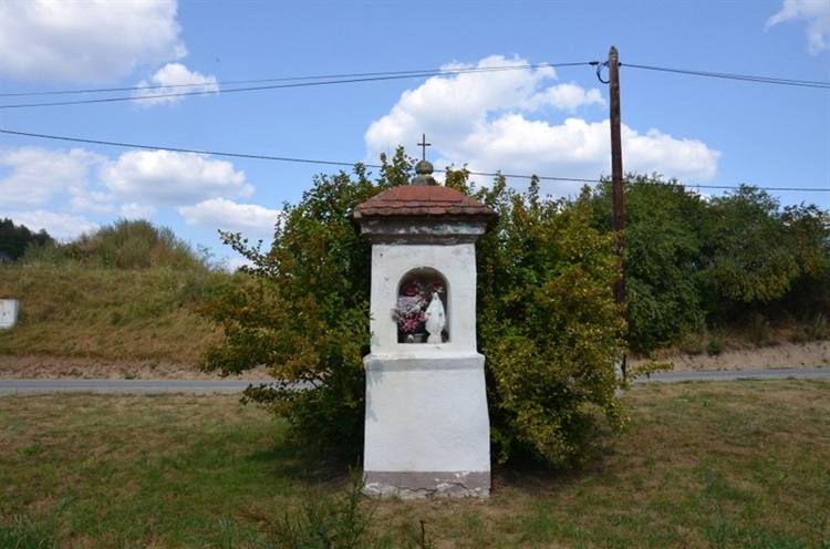 Kapliczka słupowa wzniesiona w XVIII lub XIX wieku stoi na skraju lokalnej drogi na końcu wsi. Zbudowana jest na planie zbliżonym do kwadratu, jest murowana, otynkowana i nakryta czterospadowym daszkiem. Na jego szczycie, na stopce umieszczony jest kula z krzyżem. Pierwsza część kapliczki to podstawa zakończona gzymsem. Druga część zwieńczona gzymsem posiada głęboką wnękę zakończoną półkoliście.