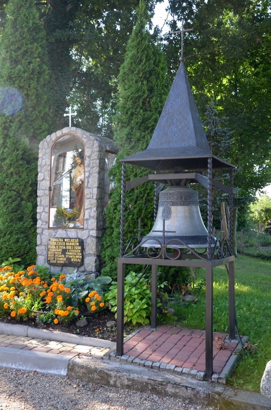 Zabytkowy dzwon z 1598 r. i współczesna kapliczka stoją obok kościoła pw. św. Józefa. Dzwon zawieszony jest w miniaturowej dzwonnicy. Jest to metalowa konstrukcja nakryta ostrosłupowym daszkiem z krzyżem na szczycie. Zawieszony dzwon pochodzi z kaplicy odbudowanej w XVI wieku.