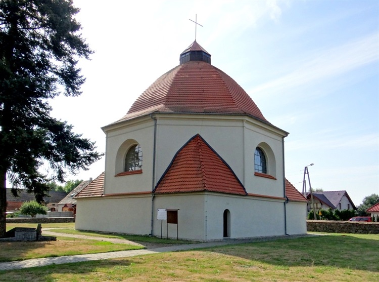 Lubuska wieś Łagów leży w gminie Dąbie w powiecie krośnieńskim. Stoi w niej niewielki kościół Podwyższenia Krzyża Świętego, dawniej ewangelicki, a od roku 1946 katolicki. Jest świątynią murowaną zbudowaną w roku 1698 w stylu barokowym. Posiada niecodzienny kształt kwadratu przechodzącego w ośmiobok nakryty dachem w formie kopuły. Kościół ma półkoliste okna oraz portal wejściowy, który zwieńczono świetnie zachowaną tablicą erekcyjną z kartuszem. Aktualnie jest świątynią filialną parafii Wniebowzięcia NMP w Leśniowie Wielkim.