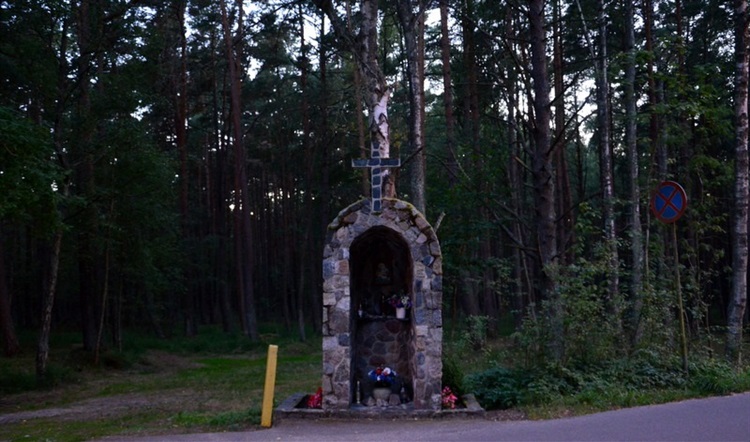 Kapliczka stoi na skraju lasu przy ul. Turystycznej. Wzniesiona jest z kamienia na planie prostokąta zamkniętego półokrągło również zakończona półokrągło z krzyżem na szczycie. Wnętrze kapliczki otwarte zakończone półokrągło. Wewnątrz nad przyściennym ołtarzykiem zawieszony jest obrazek przedstawiający Matkę Boską z Dzieciątkiem.