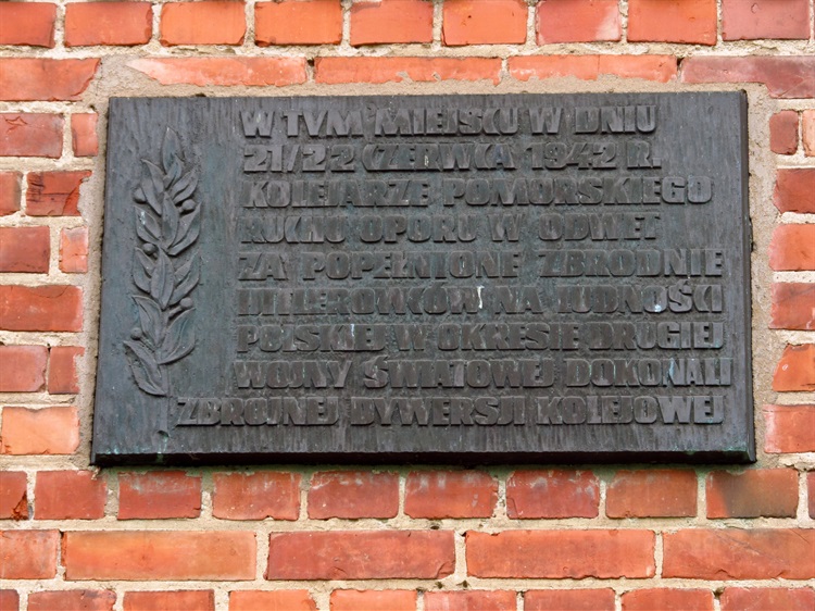 W nocy z 21 na 22 czerwca 1942 r., pomorska grupa partyzancka dokonała dywersji kolejowej na wschód od stacji Czarna Woda, w okolicy mostu kolejowego nad kanałem rzeki Wdy. Zabitych zostało około 45 żołnierzy Wehrmachtu oraz wielu rannych. Wykolejonych zostało 6 wagonów, a ruch na tej trasie został zablokowany na długi okres czasu.