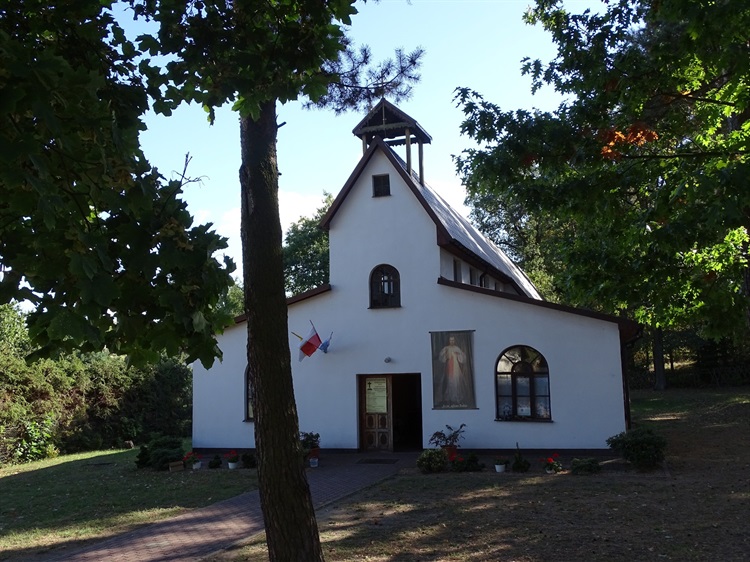 Otoczona drzewami, niewysoka, ale dość długa budowla nie od razu rzuca się w oczy. Powstała w 1925 r. dla miejscowych katolików. Miała wtedy maksymalnie 1/3 obecnych wymiarów. Bryła kościoła została wydłużona i poszerzona w toku dwóch kolejnych rozbudów – w latach 1954 i 1989. Pierwotnie postawiona na planie krzyża greckiego, ma cechy późnoklasycystyczne.