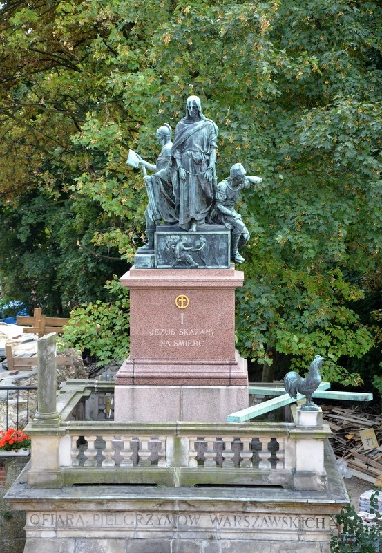 Na poszczególnych postumentach umieszczone zostały kompozycje rzeźbiarskie przedstawiające drogę Jezusa Chrystusa na śmierć i złożenie do grobu. Rzeźby wieńczące cokoły wykonane z brązu są dziełem warszawskiego rzeźbiarza Piusa Welońskiego.
