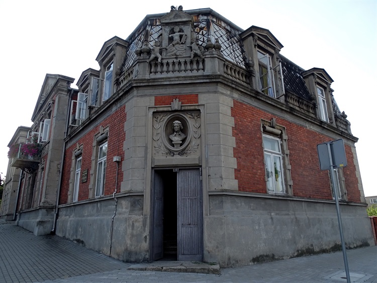 Spośród innych budynków kamienica wyróżnia się starannie wykonanymi elementami dekoratorskimi. Nad głównym wejściem zasiadły trzy putta, jedno trzyma w dłoni opasłą księgę. W zamyśle budowniczego są to dzieła Mickiewicza, którego dość duże popiersie widzimy w supraporcie (naddźwiernik), w owalnej wnęce otoczonej laurową wicią. Warto zwrócić uwagę na fakt, że kiedy budowano ten dom, Nieszawa znajdowała się w zaborze rosyjskim, więc umieszczenie na nim wyraźnie patriotycznych akcentów z pewnością było aktem odwagi.