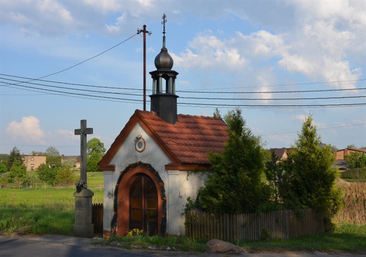 Zabytkowa kapliczka przydrożna pw. NMP została zbudowana w 1887 r. Jest to kapliczka typu domkowego, wzniesiona jest na planie prostokąta, murowana, otynkowana i nakryta dwuspadowym dachem, nad którym wznosi się sygnaturka. W ścianach bocznych okienka zakończone łukiem. Elewacja frontowa zdobiona pilastrami. Wnętrze zabezpieczone dużymi półokrągło zamkniętymi drzwiami, nad którymi w otoku umieszczona jest płaskorzeźba Matki Bożej z Dzieciątkiem. Obok kapliczki stoi krzyż. Wieńczy on prosty cokół z inskrypcja.