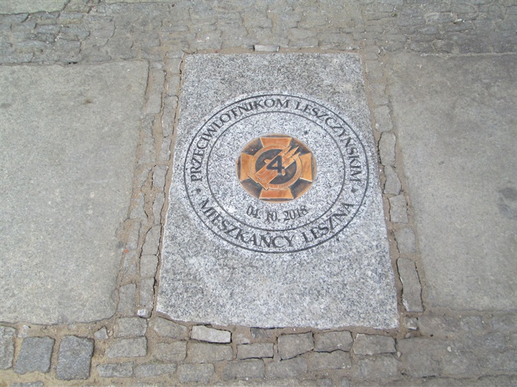 Płyta z napisem Przeciwlotnikom Leszczyńskim odsłonięta została z okazji Święta 4. Pułku Przeciwlotniczego podczas uroczystego capstrzyku z udziałem żołnierzy stacjonujących w Lesznie pododdziałów. Granitowa płyta ufundowana została przez mieszkańców miasta w dniu 4 października 2018 roku. Głównym jej elementem jest odlany z mosiądzu znak 4 Pułku Przeciwlotniczego.