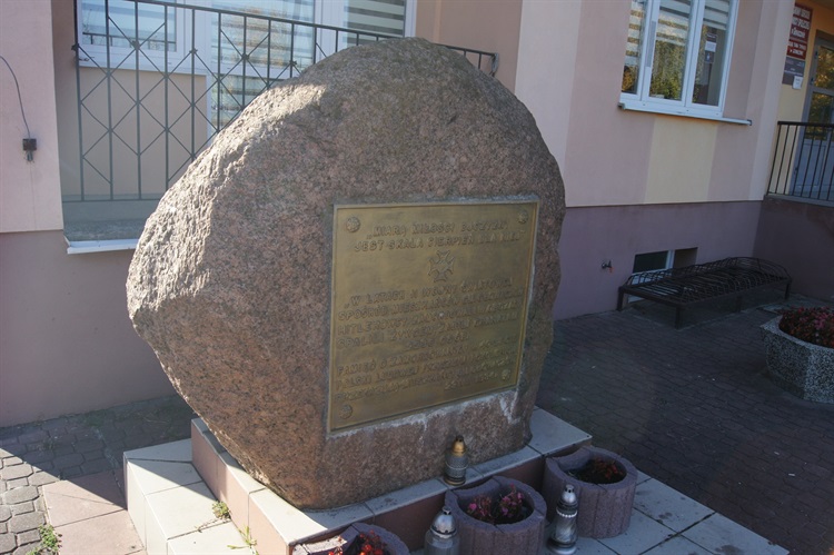 Kamień-pomnik pamięci pomordowanym w czasie II wojny Światowej. Pomnik znajduje się przed budynkiem Urzędu Gminy.