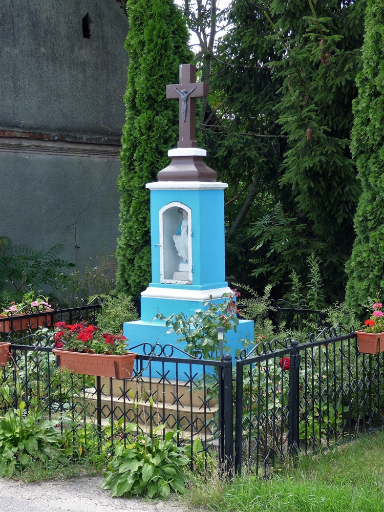 Kapliczka stoi na wschodnim krańcu wsi, przy głównej drodze przez wieś prowadzącej. Nie jest datowana, nie ma na niej żadnych napisów. Można przypuszczać, że powstała w pierwszych latach XX w. Cóż, czasy przed I Wojną Światową były naprawdę niespokojne. Jest, jak widać, bardzo zadbana. Ci dbający o nią mieszkają w sąsiedztwie.
