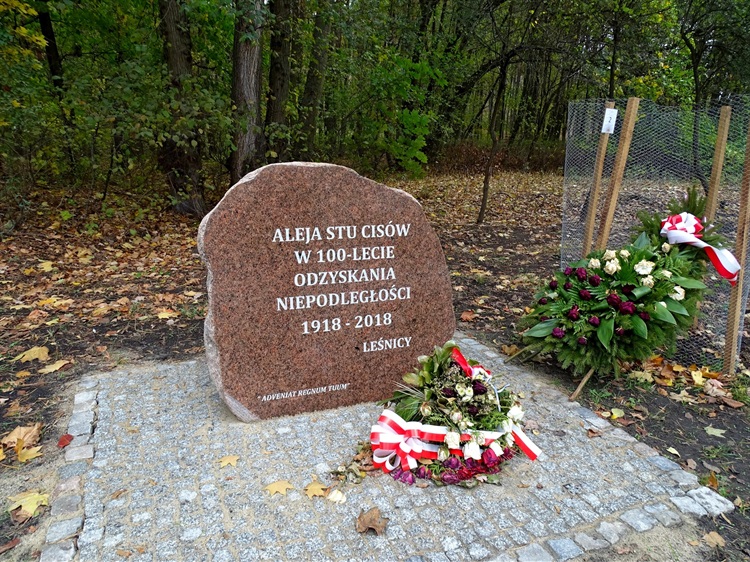W połowie października 2018 r. na jednym z miejsc postoju przy DW 132 wiodącej z Gorzowa Wlkp. do Kostrzyna, ulokowanym na terenie leśnictwa Motylewo, odsłonięto pamiątkowy kamień z inskrypcją „Aleja 100 cisów w stulecie odzyskania niepodległości/1918-2018/ Leśnicy/Adveniat Regnum Tuum”. Jak mówią sami leśnicy „obelisk ma przypominać o tych, którzy oddali swe życie za ojczyznę”