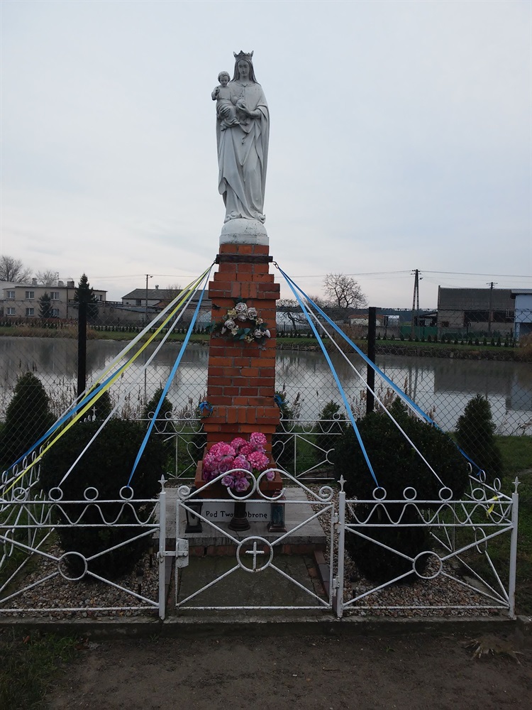 Wieś Jasień leży na Równinie Kościańskiej, przy drodze wojewódzkiej nr 311. W centrum wsi, przy wspomnianej drodze, tuż przy stawie znajduje się figura Matki Boskiej z Dzieciątkiem Jezus. Umieszczona jest na murowanym z cegły cokole. W dolnej części widoczna jest tabliczka z napisem: „Pod Twoją obronę”. Całość otoczona jest metalowym płotkiem.