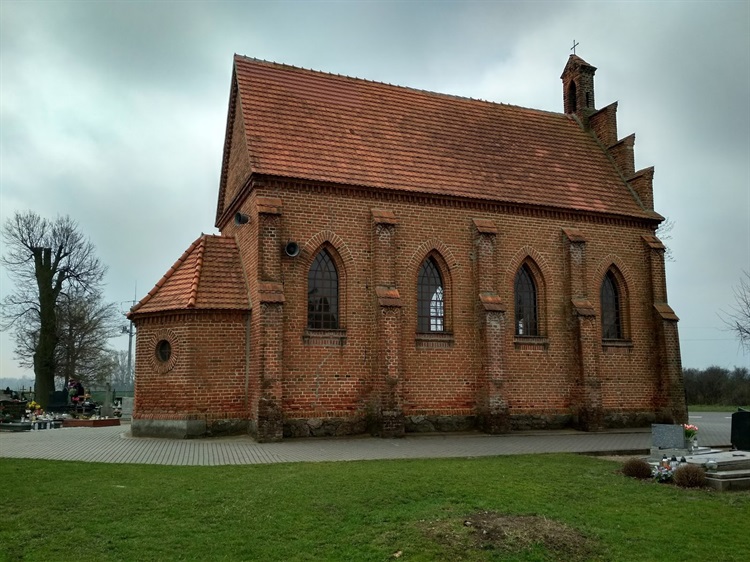 Kościół św. Krzyża stoi na skraju miejscowości przy drodze wojewódzkiej nr 438 (DW438). Zbudowany w stylu neogotyckim w 1858 r. Świątynia jest obiektem wzniesionym na planie prostokąta z niższym i węższym pięciobocznie zamkniętym prezbiterium. Elewacja frontowa zakończona schodkowym szczytem z sygnaturką na szczycie. Elewacja frontowa i boczne wzmocnione przyporami. Okna nawy zakończone ostrym łukiem. Wejście do świątyni pomiędzy dwoma pilastrami zamknięte również ostrym łukiem. Obecnie kościół służy jako kaplica cmentarna.