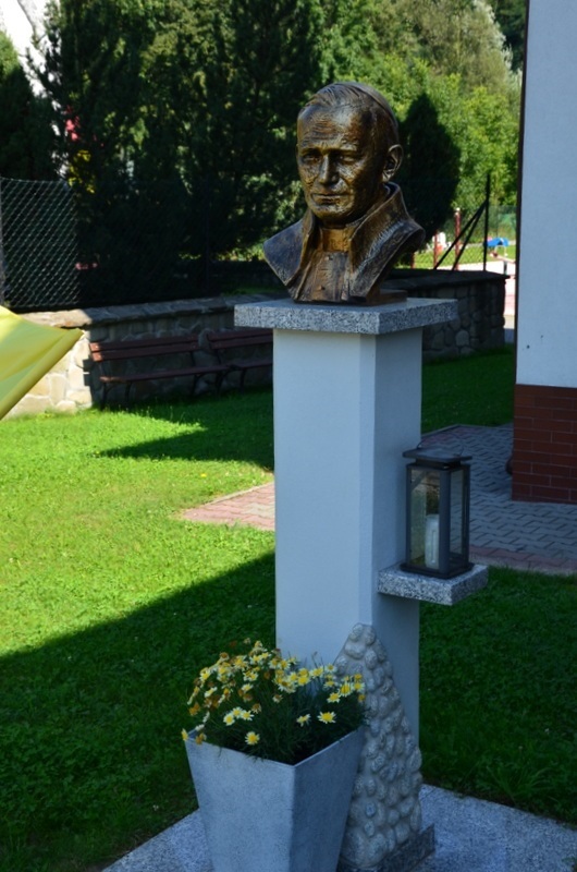 W centrum miejscowości, przed budynkiem Szkoły Podstawowej im. Jana Pawła II stoi drugi pomnik papieża. Jest to popiersie wieńczące prosty postument.