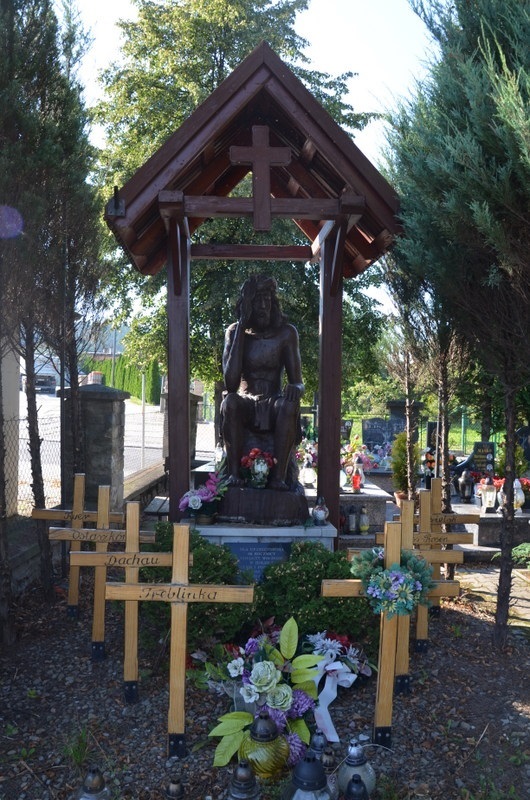 Pomnik znajduje się na nowym cmentarzu komunalnym. Upamiętnia ofiary zbrodniczej polityki władz sowieckich i komunistycznych. Na cokole pomnika umieszczona jest tablica o treści: „Dla upamiętnienia 60. rocznicy Golgoty Wschodu, w hołdzie poległym i pomordowanym podczas okupacji sowieckiej niemieckiej i sowieckiej – Żołnierze organizacji niepodległościowych pierwszej i drugiej konspiracji.”. Cokół wieńczy drewniana rzeźba Chrystusa Frasobliwego pod dwuspadowym dachem. Przed monumentem stoją drewniane krzyże z nazwami miejsc straceń Polaków (Dachau, Treblinkę, Twer, Katyń, Auschwitz, Gross-Rossen, Staszków, Kozielsk).