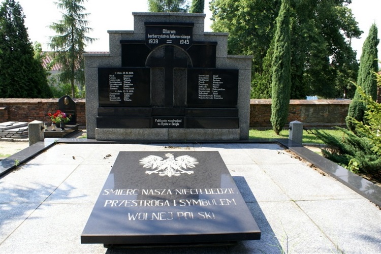 Grób ofiar terroru hitlerowskiego znajduje się na cmentarzu parafialnym przy ul. Św. Wita. Jest to zbiorowa mogiła, w której spoczywa 23 rozstrzelanych na rynku w dn. 30.09 i 23.10.1939 r. mieszkańców Ziemi Śmigielskiej. Jest to zbiorowa mogiła z pomnikiem wykonanym z marmuru i granitu na szczycie. Na głównej płycie pomnika, na jej środku znajduje się ciemna pyta z wizerunkiem orła i napisem "ŚMIERĆ NASZA NIECH BĘDZIE PRZESTROGĄ I SYMBOLEM WOLNEJ POLSKI". Nad płytą góruje centralnie ustawiona stela z centralnie umieszczonym krzyżem. Na płytach z czarnego marmuru umieszczone zostały napisy: najwyżej "Ofiarom barbarzyństwa hitlerowskiego 1939 = 1945", po bokach nazwiska i imiona pomordowanych, a najniżej napis "Publicznie rozstrzelani na Rynku w Śmiglu". Grób ogrodzony jest kamiennymi słupkami połączonymi odcinkami metalowego łańcucha.