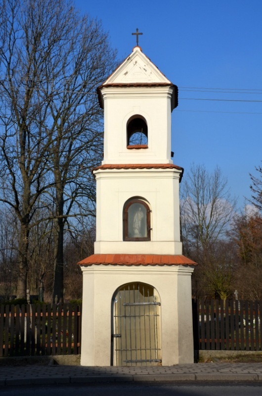 Kapliczka wzniesiona pod koniec XVIII wieku stoi przy ul. Wrocławskiej, na terenie niewielkiego cmentarza wiejskiego założonego prawdopodobnie w XIX wieku. Kapliczka zbudowana jest na rzucie zbliżonym do kwadratu, jest murowana, otynkowana i nakryta dwuspadowym daszkiem zwieńczonym krzyżem. Naroża kapliczki ścięte, poszczególne kondygnacje przedzielone gzymsami nakrytymi dachówką, a każda kolejna kondygnacja mniejsza od poprzedniej.