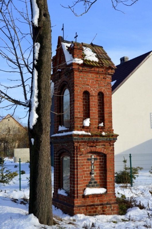Kapliczka stoi przy ul. Wrocławskiej w Bierkowicach, wsi włączonej do Opola w 1975 r. Kapliczka wzniesiona prawdopodobnie w XIX lub na początku XX wieku. Jest to obiekt wzniesiony na planie kwadratu, murowany z czerwonej cegły i nakryty dwuspadowym dachem. Kapliczka dwukondygnacyjna, kondygnacje przedzielone gzymsem. Elewacja frontowa, w której wykonane są dwie , zamknięte półokrągło wnęki, zakończona jest trójkątnym szczytem i sterczynami po bokach. Szczyt i sterczyny zwieńczone krzyżami. W przeszklonych wnękach umieszczone są figury: w niższej - Najświętszego Serca Pana Jezusa i Matki Boskiej Niepokalanego Poczęcia, a w wyższej - Najświętszego Serca Pana Jezusa. W ścianach bocznych pierwszej kondygnacji dwie półokrągło zakończone płyciny z krzyżami, a w wyższej kondygnacji w ścianach bocznych i tylnej wąskie wnęki zamknięte półokrągło.