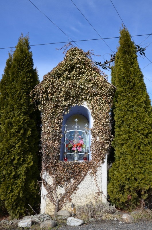 Kapliczka stoi na skraju wiejskiej drogi w pobliżu gospodarstwa nr 13. Kapliczka jest obiektem murowanym na planie prostokąta i nakryta dwuspadowym daszkiem. W elewacji frontowej głęboka wnęka zakończona łukiem. Wewnątrz umieszczony jest obraz malowany na blasze. Jest to wizerunek Matki Boskiej Niepokalanego Poczęcia. Matka Boska nakryta niebieskim płaszczem stoi na kuli ziemskiej i depcze piekielnego węża. Nad MB unosi się Duch Święty. Wnęka zamknięta jest ozdobną metalową kratą.