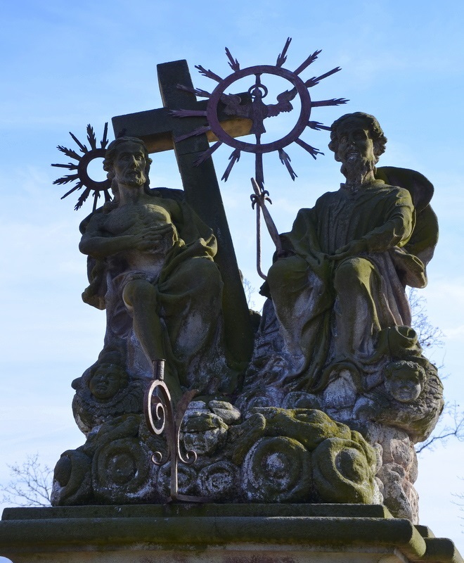 Okazały postument przedstawiający Trójcę Świętą stoi na terenie posesji nr 17 przy ul. Kłodzkiej. Niska podstawa postumentu zakończona dużym gzymsem stoi na kamiennych płytach. Na podstawie ładny cokół zdobiony po bokach ślimacznicami i motywami roślinnymi. Na ścianie frontowej w ozdobnym otoku wyryty jest napis fundacyjny z datą postawienia postumentu - 1734 r. Cokół wieńczy kompozycja rzeźbiarska przedstawiająca Trójcę Świętą.