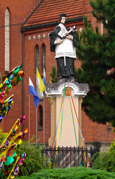 W Brzeźcach stoi kamienna, polichromowana figura św. Jana Nepomucena na cokole z profilowanym gzymsem z początku XIX wieku. Znajduje się ona przy bramie prowadzącej na cmentarz i do kościoła Matki Bożej Szkaplerznej w Brzeźcach (dekanat Pawłowice Śl.).