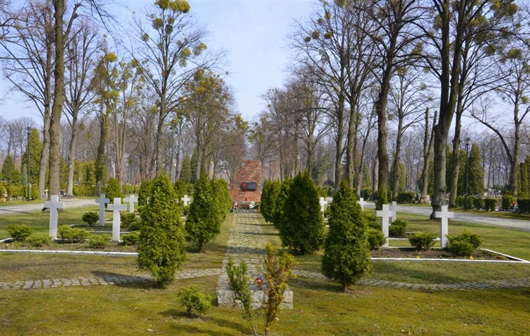 Zbiorowe mogiły więźniów zmarłych podczas marszu śmierci z niemieckiego obozu Auschwitz-Birkenau znajdują się przy alei głównej cmentarza centralnego. Więźniowie zostali zamordowani przez konwojentów w styczniu 1945 r. na trasie pieszej ewakuacji między Rybnikiem a Raciborzem. Początkowo więźniowie byli chowani w różnych miejscach, tam gdzie stracili życie. Po wojnie ich szczątki zostały przeniesione na tutejszy cmentarz i pochowane w 8 zbiorowych mogiłach.