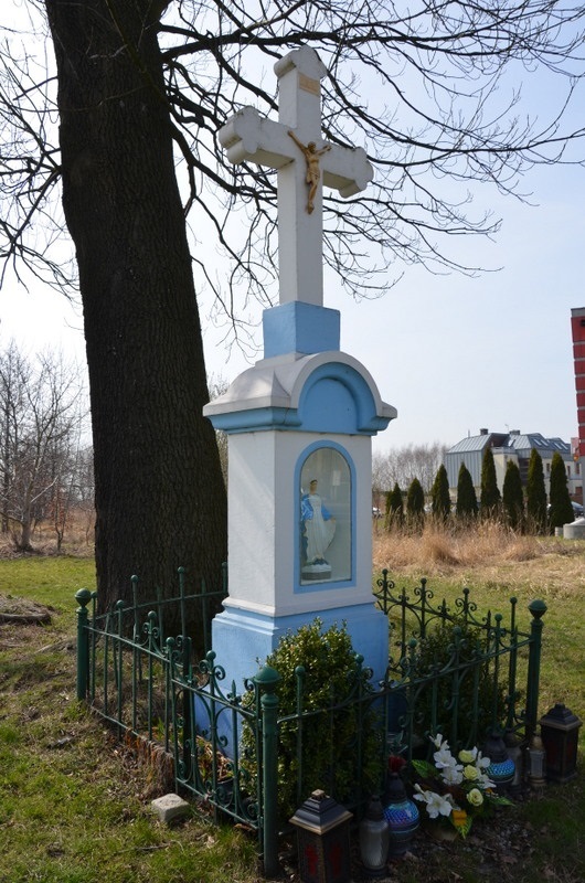 Postument stoi przy ul. Kozielskiej w Starych Gliwicach przed pniem dużego drzewa. Dwustopniowa podstawa wieńczy cokół zakończony wygiętym łukiem i przeszkoloną wnęką w ścianie frontowej. We wnęce figurka Matki Boskiej Niepokalanego Poczęcia. Na cokole duży krzyż z ramionami zakończonymi trójlistnie. Na krzyżu niewielka metalowa figurka ukrzyżowanego Chrystusa, a nad głową ukrzyżowanego niewielki kartusz INRI. Postument otoczony jest niewielkim ogrodzeniem.