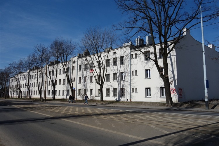 Znajdujący się przy ul. Przybyszewskiego 76 (dawniej ulica nosiła nazwę Zarzewskiej, a następnie Napiórkowskiego) ciąg dwupiętrowej zabudowy mieszkalnej to dawne domy czynszowe dla przymusowo wysiedlanych ze swoich mieszkań. Zostały one wzniesione w okresie międzywojennym, a dokładnie w 1928 r., według projektu architekta Wiesława Lisowskiego.