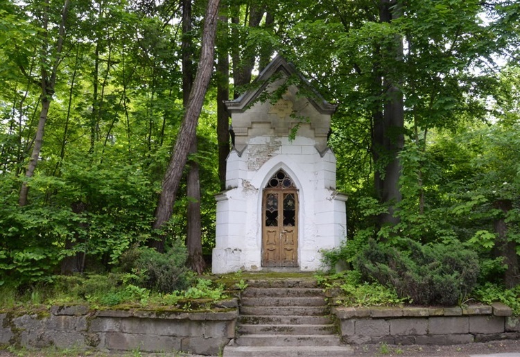 Nazwa kapliczki nawiązuje do rodziny Stadnickich, właścicieli pobliskiego pałacu. Wzniesiona została przez Stadnickich jako wotum dziękczynne za ocalenie ich córki, która w trakcie przejazdu z pałacu do kościoła wypadła z bryczki. Zdarzenie to miało to miejsce 25.11.1862 r. i zostało uwiecznione w ozdobnej płycinie nad wejściem do kapliczki. Powyżej umieszczona jest stiukowa głowa anioła.