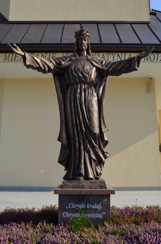 Przy wzniesionym w latach 2006-2015 kościele pw. Judy Tadeusza ustawione zostały dwie rzeźby. Pierwsza rzeźba przedstawiająca Chrystusa Króla, stoi przed wejściem do świątyni. Postać Chrystusa z koroną na głowie i rozłożonymi rękami stoi na niskiej podstawie. Na podstawie fragment refrenu pieśni religijnej „Bóg nad swym ludem” - „Chryste króluj, Chryste zwyciężaj”.