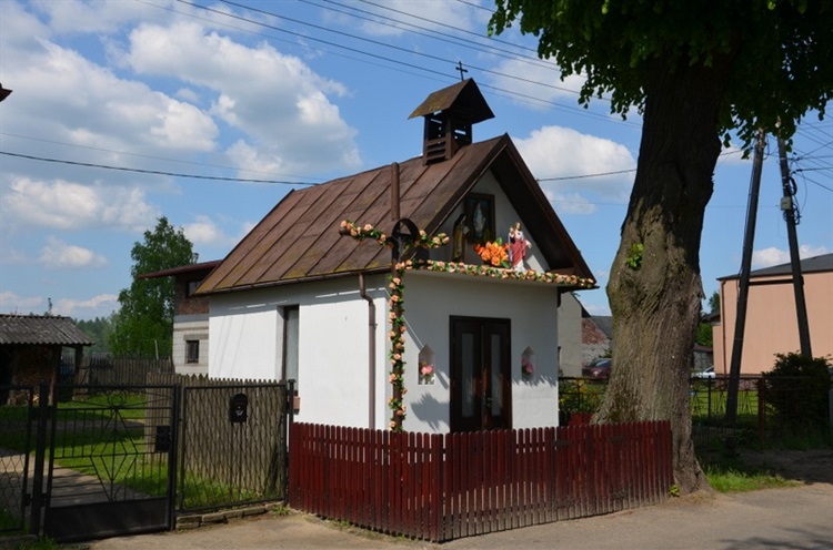 Kapliczka stoi w centrum wsi. Wzniesiona jest na planie prostokąta, jest murowana, otynkowana i nakryta dwuspadowym dachem zwieńczonym sygnaturką. W ścianach bocznych duże prostokątne okna, od frontu drewniane przeszklone drzwi zabezpieczające wejście do kaplicy. Po obu stronach wejścia wnęki zwieńczone ostrym łukiem. Elewacja frontowa zakończona trójkątnym szczytem z umieszczonym na nim obrazem i figurkami. Wewnątrz przyścienny ołtarzyk przystrojony kwiatami, a na ścianach obrazy.