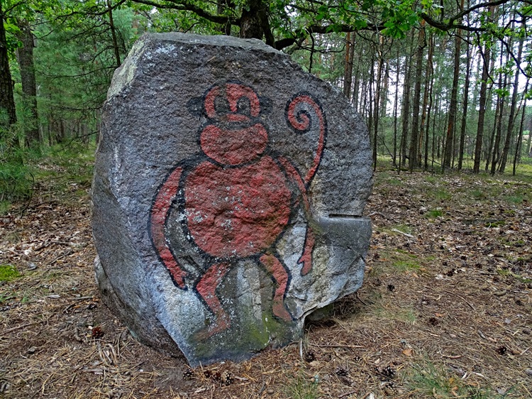 Jedną z najbardziej znanych i chętnie odwiedzanych jest Czerwona Małpa, czyli leżący na leśnym rozdrożu, owiany legendami głaz narzutowy z charakterystycznym wizerunkiem małpy wymalowanym na jego powierzchni. Kamień nie jest szczególnie wielki, za to przekazów z nim związanych jest co najmniej kilka.