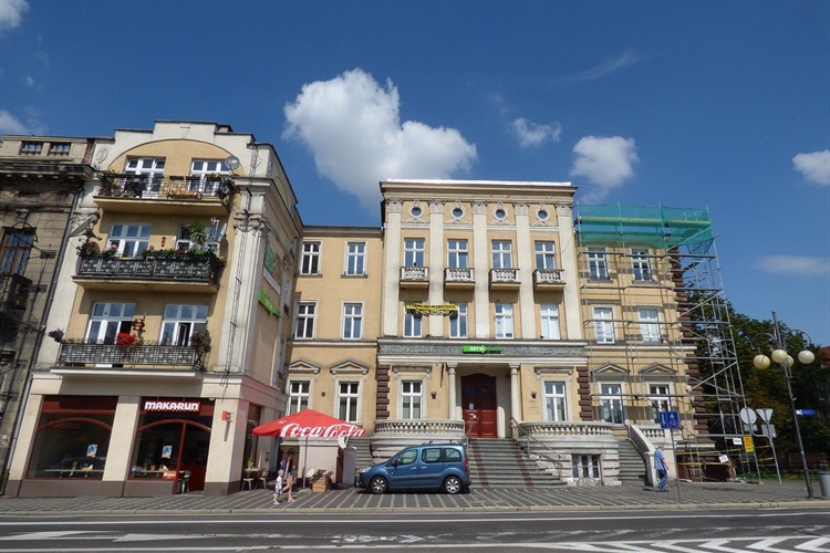 Dwie, bogato zdobione kamienice, stojące przy ul. Śródmiejskiej 27 (róg z ul. Mostową) zostały wzniesione w okresie międzywojennym. Większa, z prowadzącymi do niej łukowatymi schodami, powstała w 4. ćw. XX w., ok. 1925 r. Mniejsza, sąsiadująca z zabytkowym budynkiem dawnego Banku Handlowego Warszawskiego została zbudowana ok. 1925 r.
