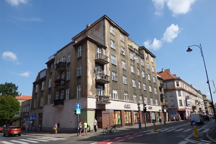 Pięciokondygnacyjny dom z lokalami handlowymi w części parterowej oraz pięcioma oficynami, stojący przy ul. Śródmiejskiej 35 (róg z ul. Tadeusza Kościuszki) został wzniesiony w roku 1930. Jego pierwotnymi właścicielami byli dwaj kaliscy przedsiębiorcy, właściciele młyna motorowego, bracia Maurycy i Leon Kowalscy. Plany architektoniczne zabudowy parceli sporządził architekt Albert Nestrypke.