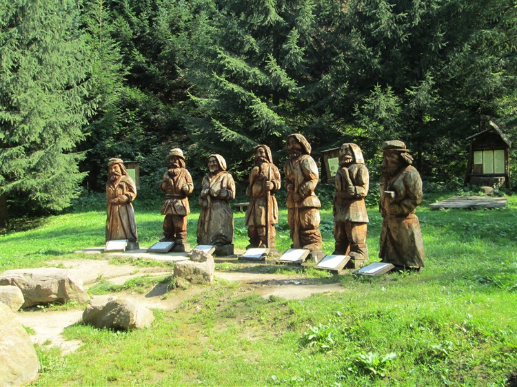 Rzeźby Zbójników znajdują się na Zbójnickiej Polanie. Każdy z nich ma swoje imię. Jest tam Ważny, Skała, Chroboczek, Kiep, Śliski, Dziurawy oraz zbójniczka Hanka. Przy każdej z rzeźb umieszczono tabliczki z opisem. Legenda mówi iż zbójowie mieli dosyć trybu życia jaki wiedli i właśnie na owej polanie założyli osadę i skończyli ze zbójowaniem.