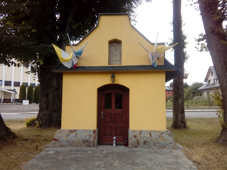Kapliczka została wybudowana w latach 1891 - 1894 r z fundacji Jana i Maryjanny Szewczyków oraz drugiego męża Maryjanny, Józefa Platy. Za zgodą biskupa tarnowskiego w kapliczce odprawiano 1 nabożeństwo w roku – tzw. sumę odpustową. Jest to kapliczka domkowa, murowana, otynkowana, z półkolistym zamknięciem i krytym blachą dwuspadzistym dachem. Wewnątrz znajdują się obrazy Matki Bożej i Chrystusa Ukrzyżowanego.