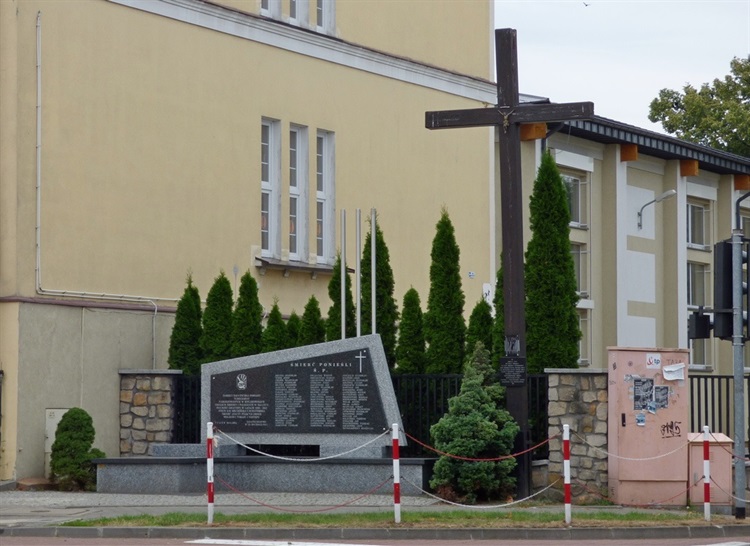 Tuż przy monumentalnym budynku Szkoły Podstawowej nr 1 im. Henryka Sienkiewicza, na rogu ulic 3-go Maja i Stanisława Kączkowskiego znajdują się dwa symbole pamięci.