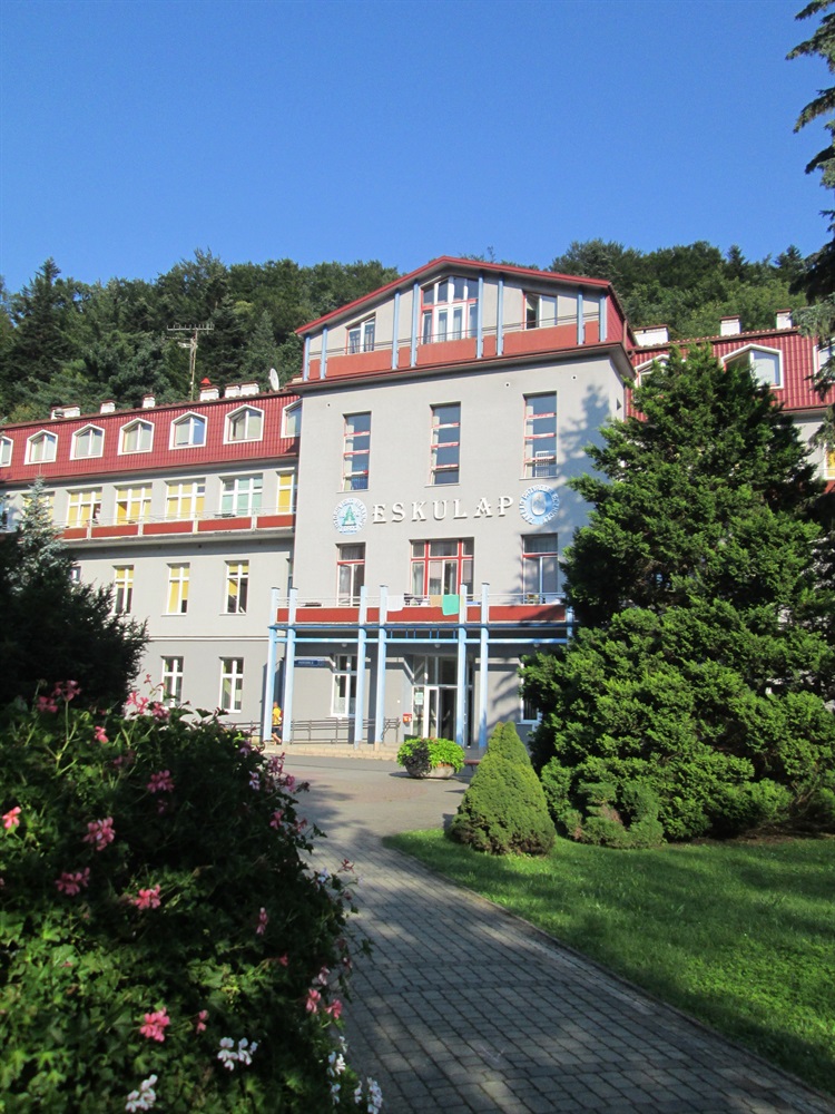 Budynek Szpitala i Sanatorium Uzdrowiskowego „Eskulap” znajduje się w centrum parku zdrojowego. Wybudowany został w 1926 roku jako Zakład Przyrodoleczniczy. Obecnie jest to nowoczesny trzykondygnacyjny obiekt o wysokim standardzie. Znajduje się w nim recepcja, stołówka, kafejka internetowa. Szpital posiada 176 miejsc w pokojach 1, 2, 3 i 4 osobowych. Wszystkie pokoje posiadają pełny węzeł sanitarny. W „Eskulapie”prowadzona jest większość zabiegów rehabilitacyjnych dla kuracjuszy.